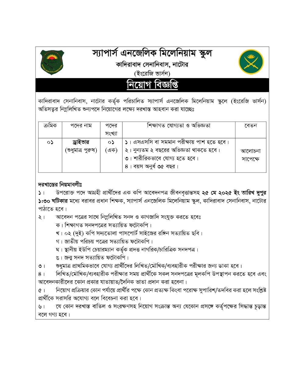 নিয়োগ বিজ্ঞপ্তি (ড্রাইভার)